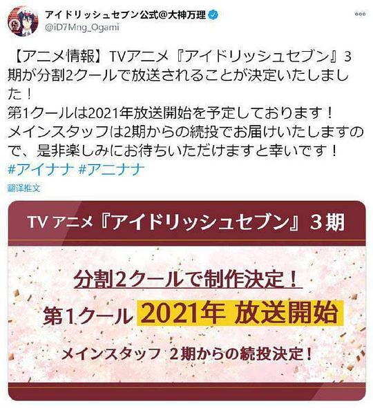 TV动画《IDOLiSH7》第3季确定将分割放送,第1季度将于2021年内播出能陪你走到最后的,一定是你自己那颗坚定的心。